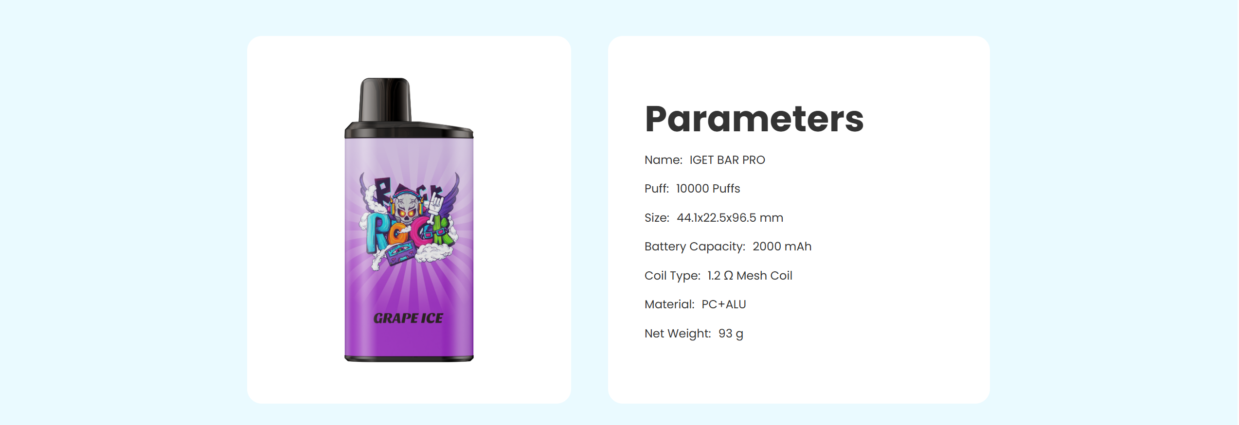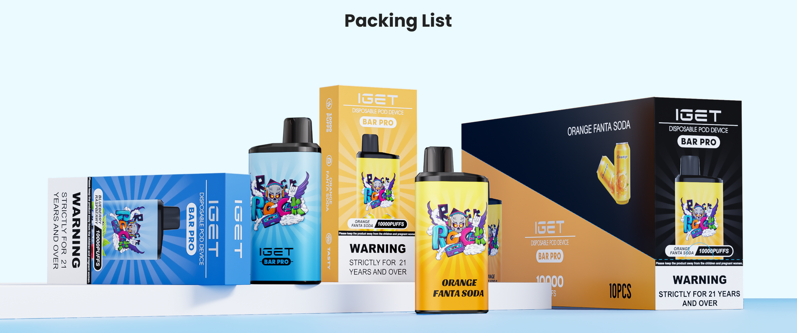 The IGET Bar PRO is a casual e-cigarette device made of lightweight aluminum alloy, offering 10,000 puffs with a comfortable grip. With its amazing flavors and large capacity, the IGET Bar PRO is perfect for extended use without frequent replacements. It features a large 22ml e-liquid tank and a powerful 2350mAh built-in battery, providing a smooth and convenient e-cigarette experience despite being non-rechargeable. Its innovative design balances convenience and performance, allowing users to enjoy rich flavors and consistent satisfaction throughout its lifespan. Perfectly blending functionality and style, it's the ideal choice for users seeking a reliable and high-quality e-cigarette solution.